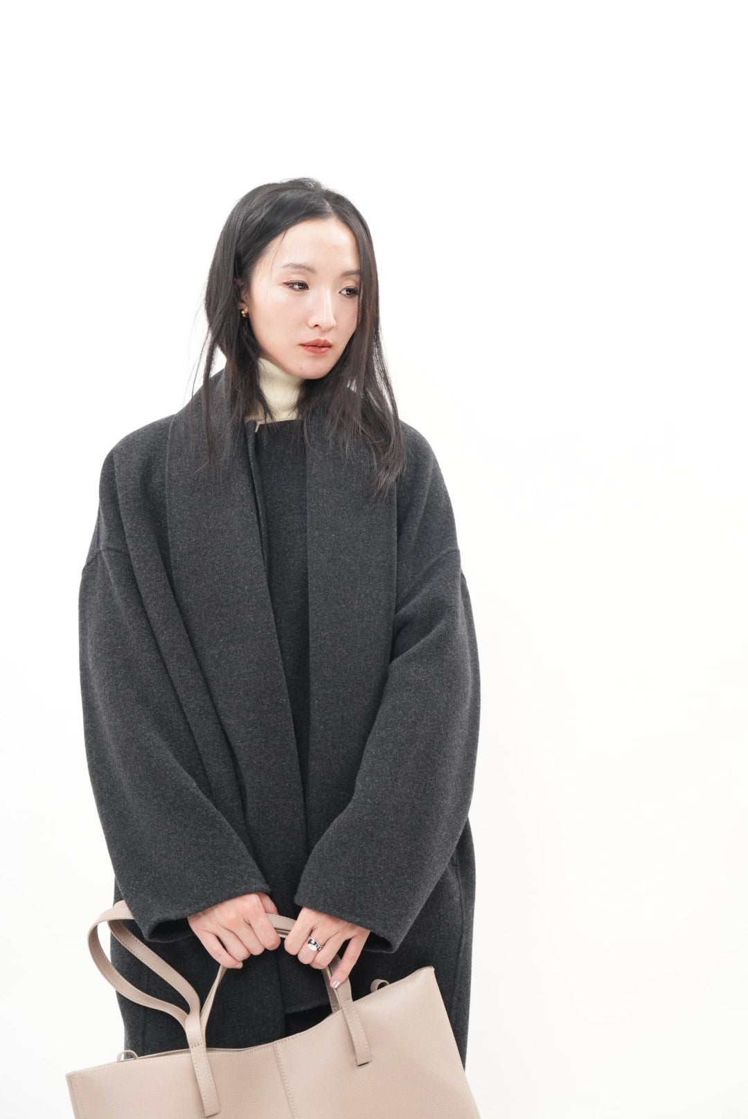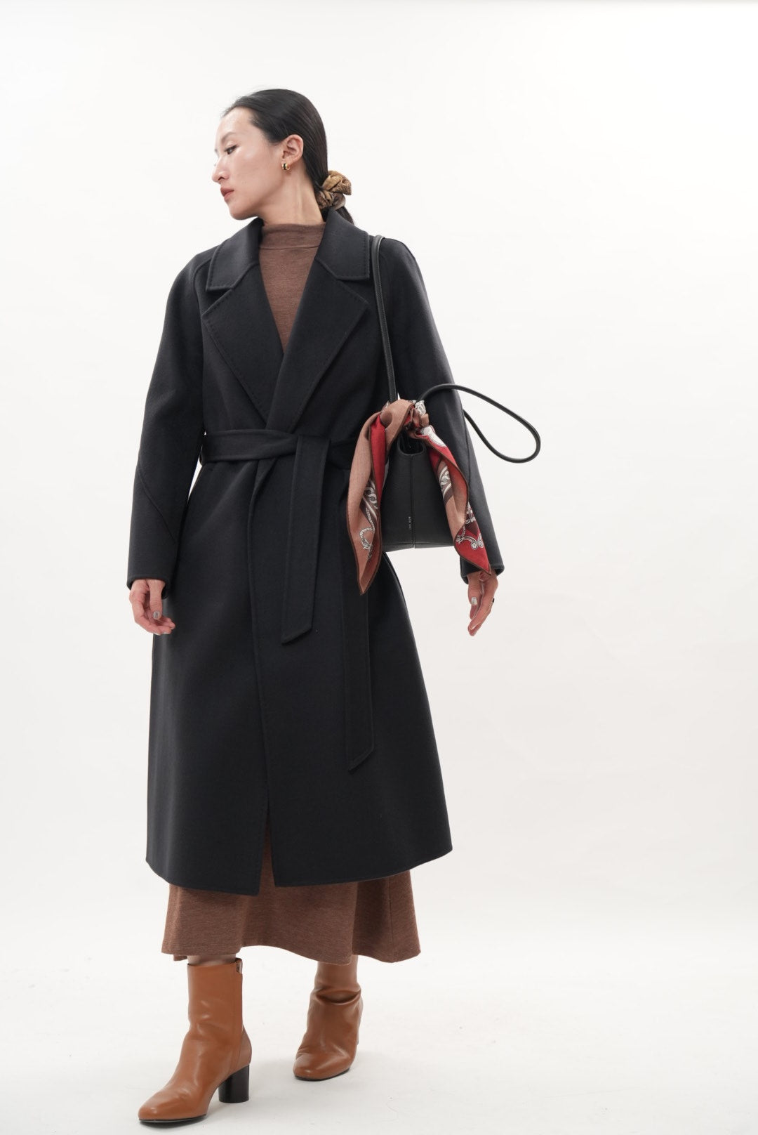ウール100% ダブルフェイスロングコート(チャコールグレー)
