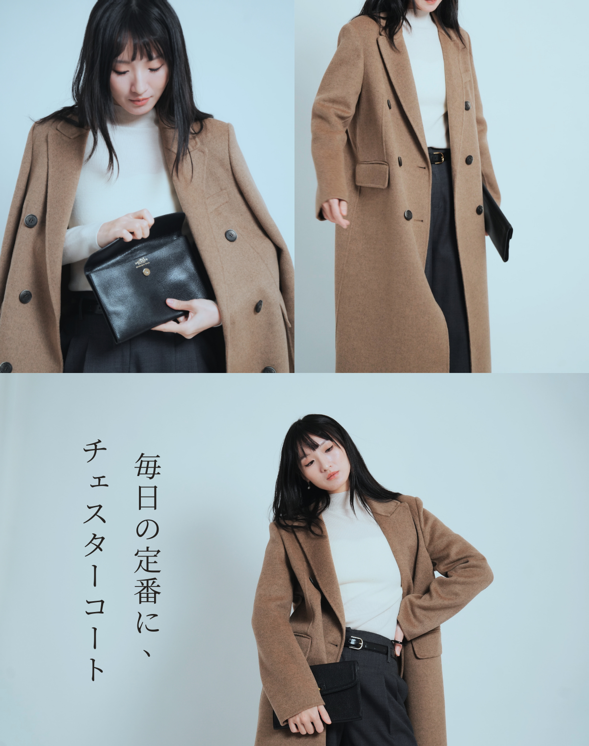 カシミヤブレンド チェスターコート(キャメル)【秋冬定番】
