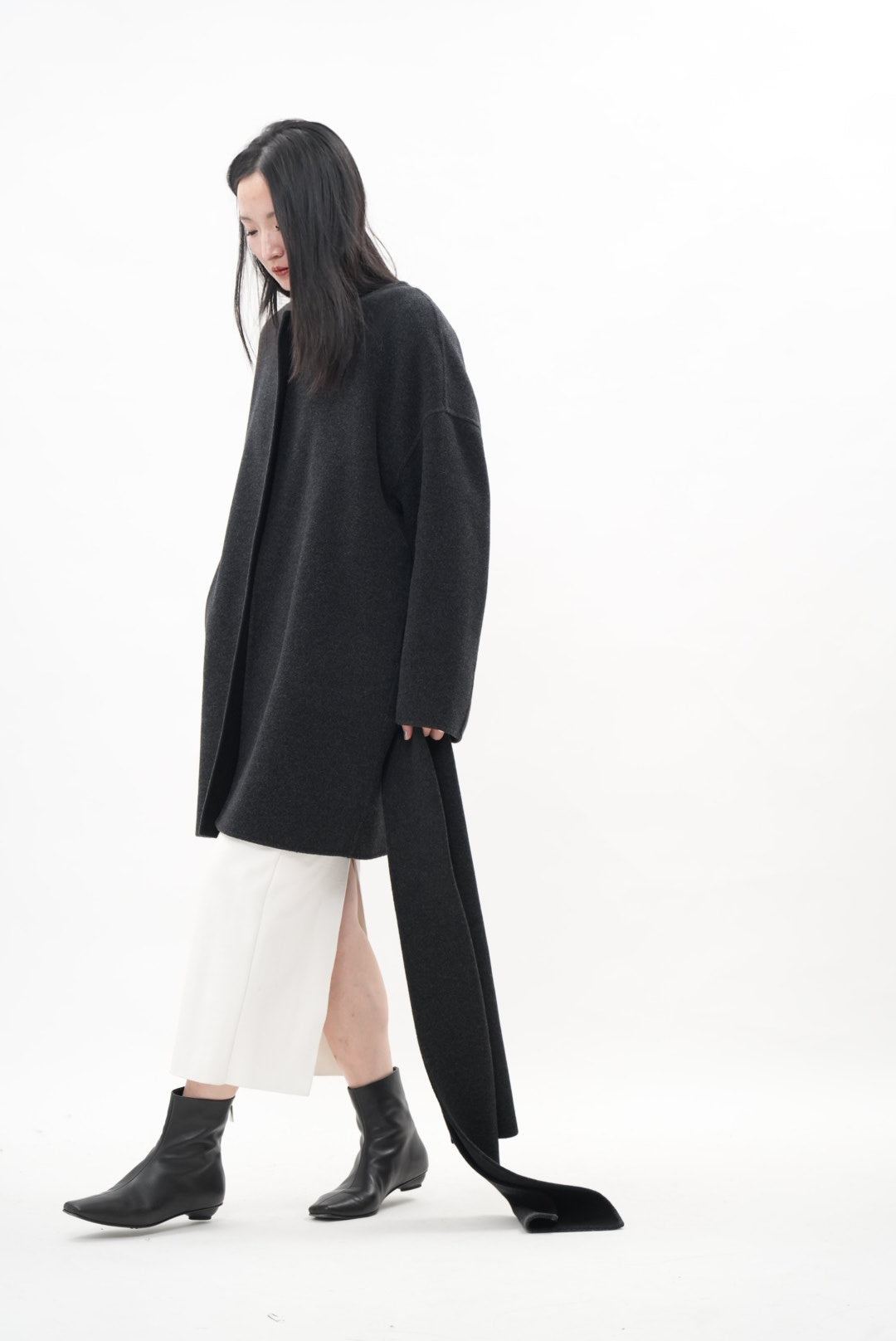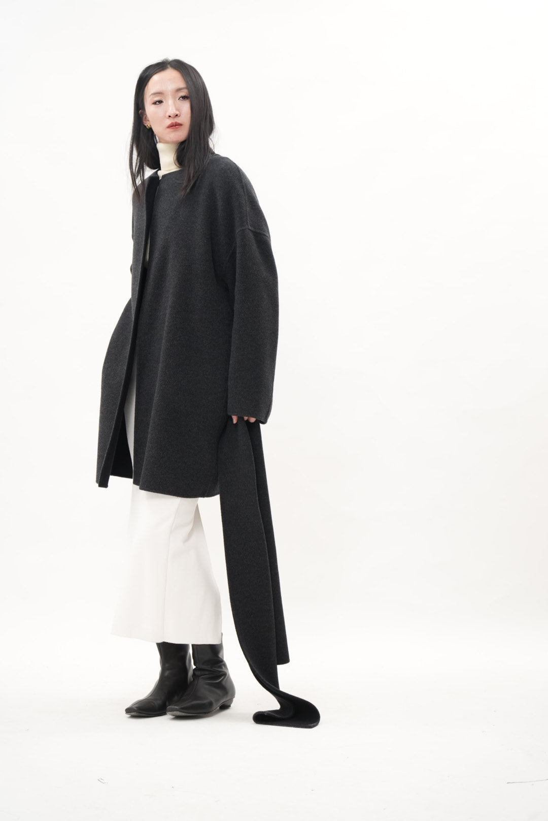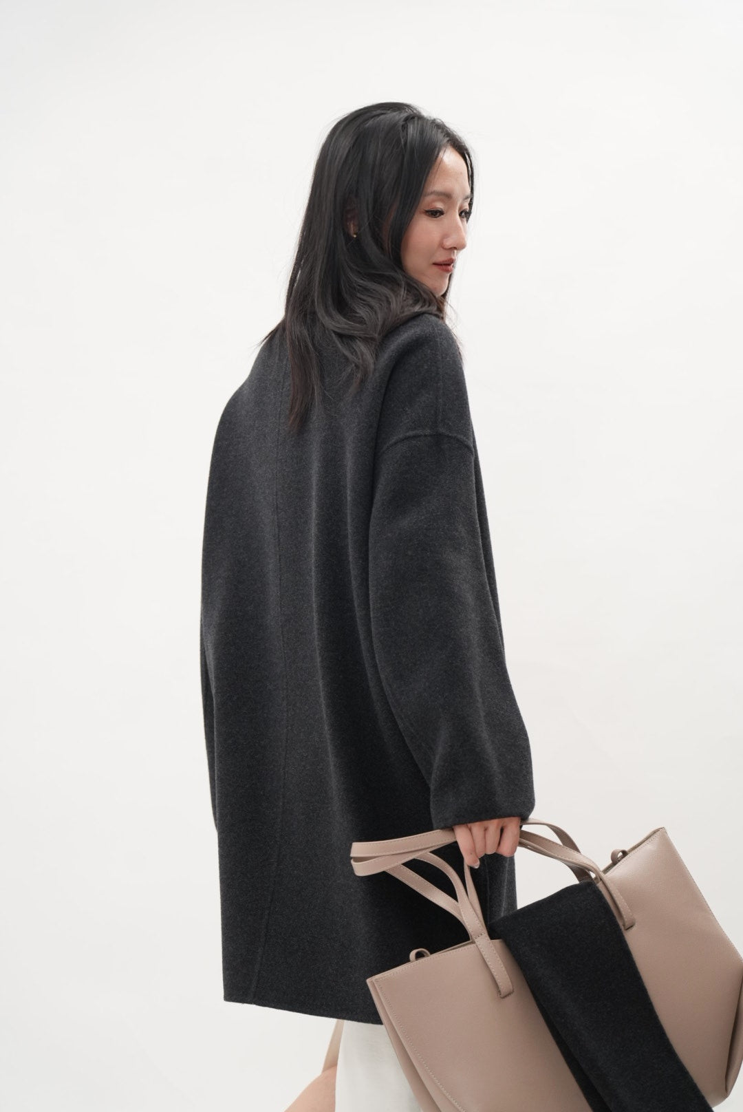 ウール・シルク・カシミヤが織りなす、柔らかな光をまとうダブルフェイスコート。