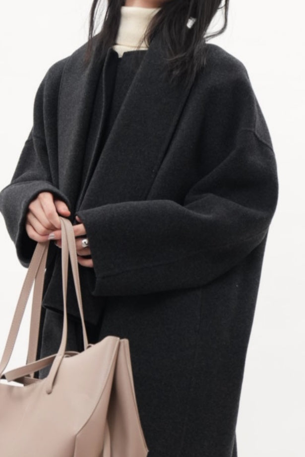 グレイッシュソフト ダブルフェイスコート(スカーフ付き)