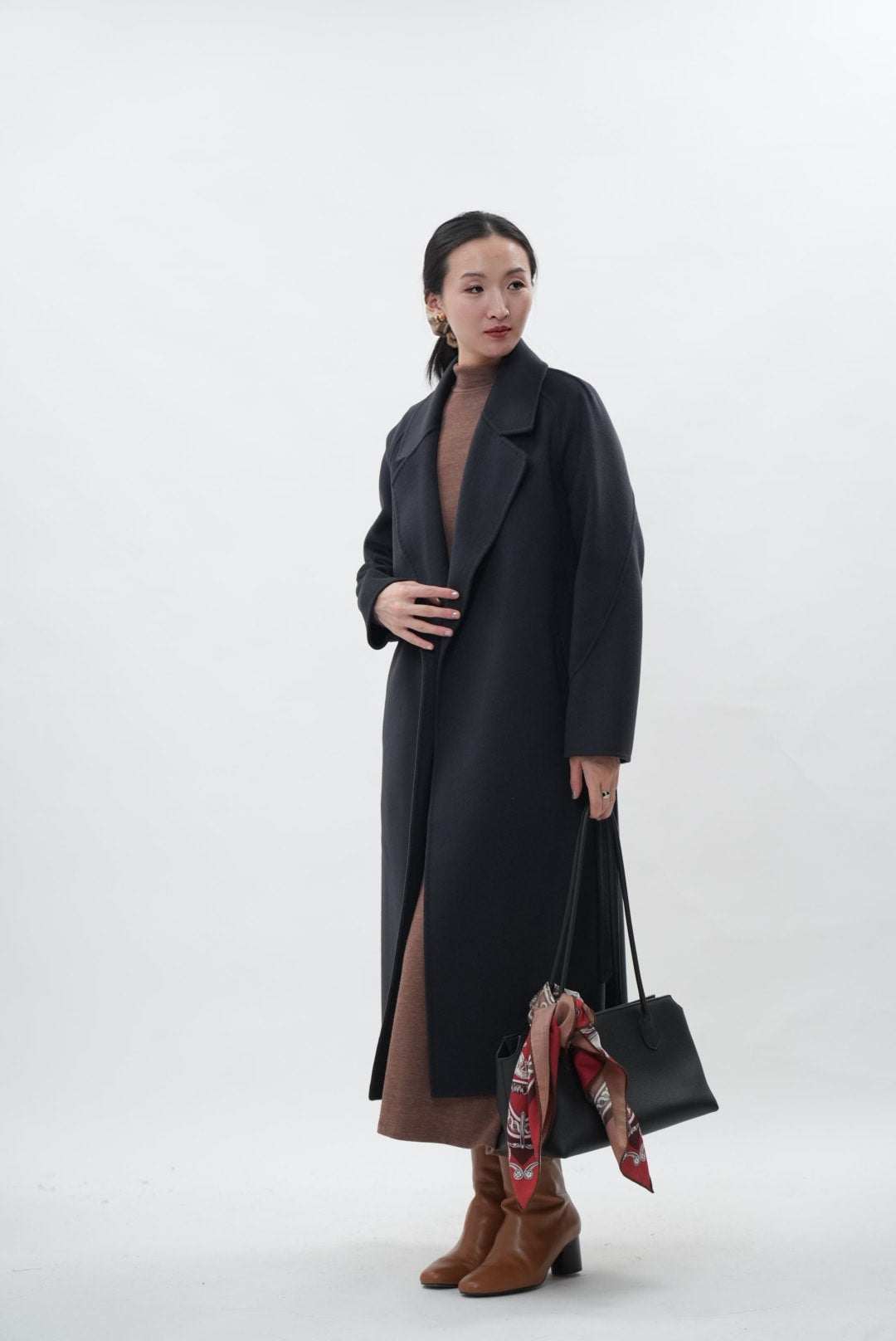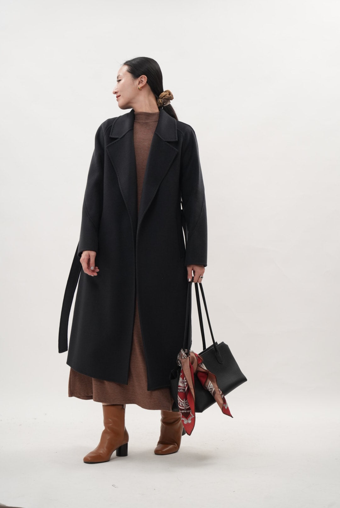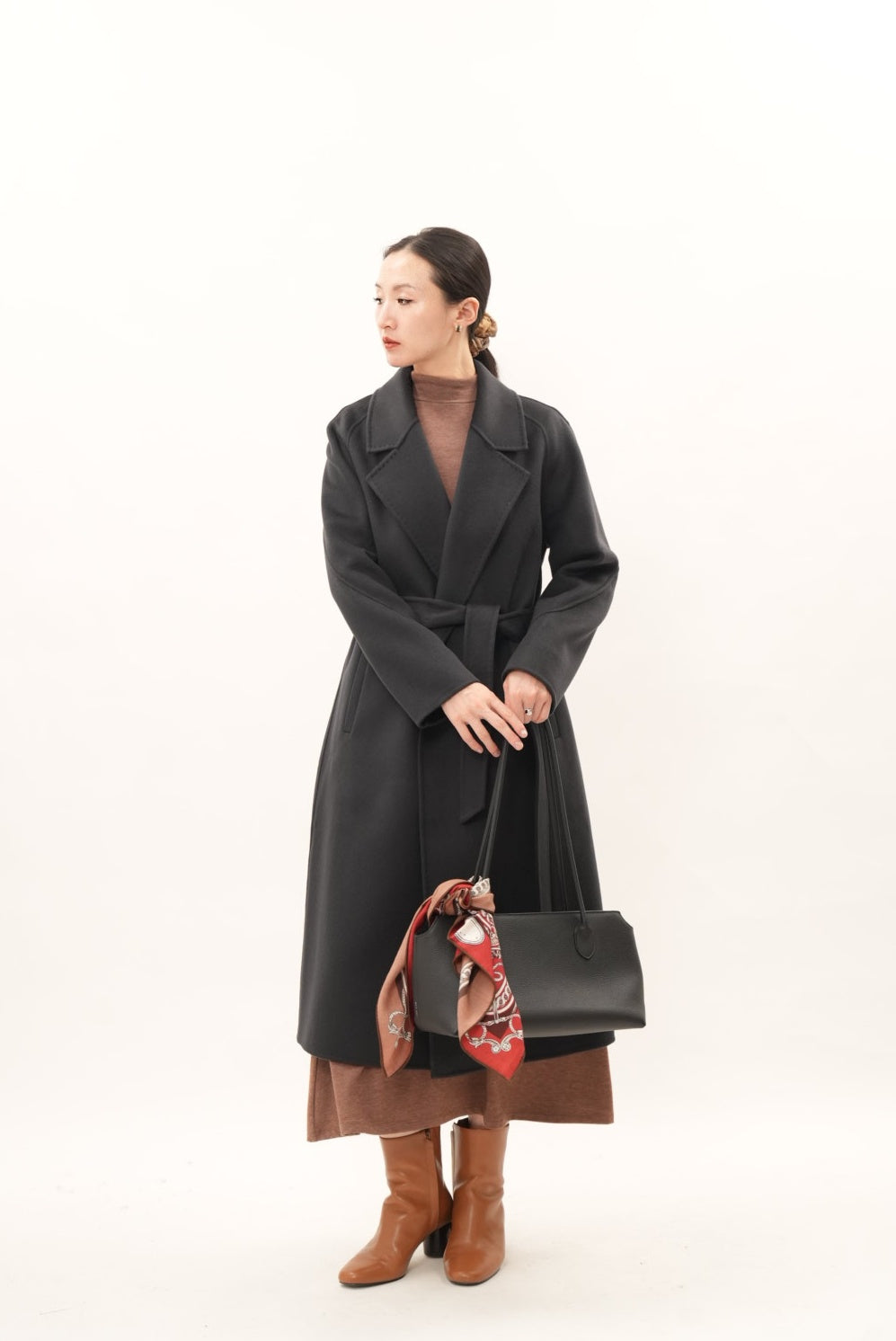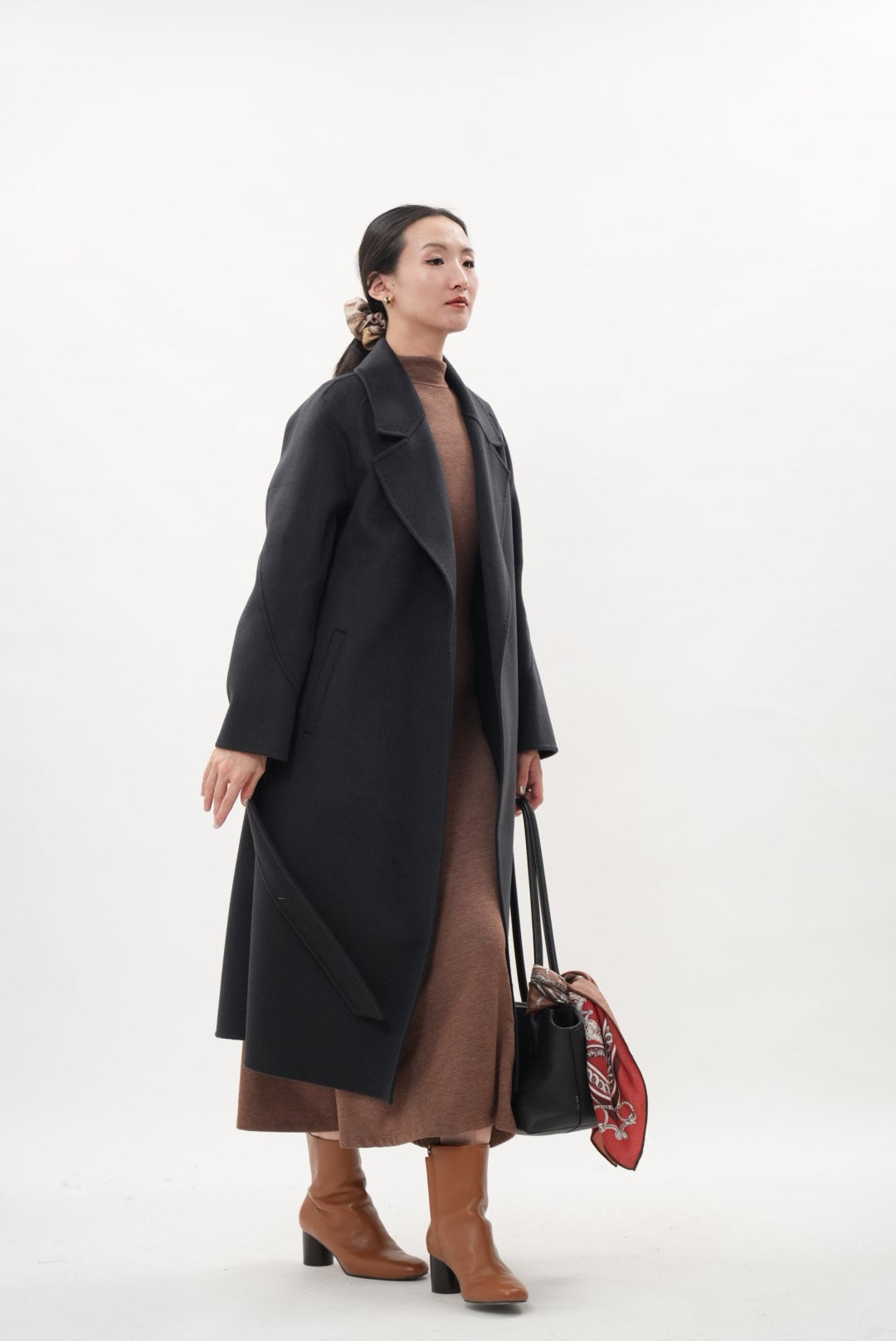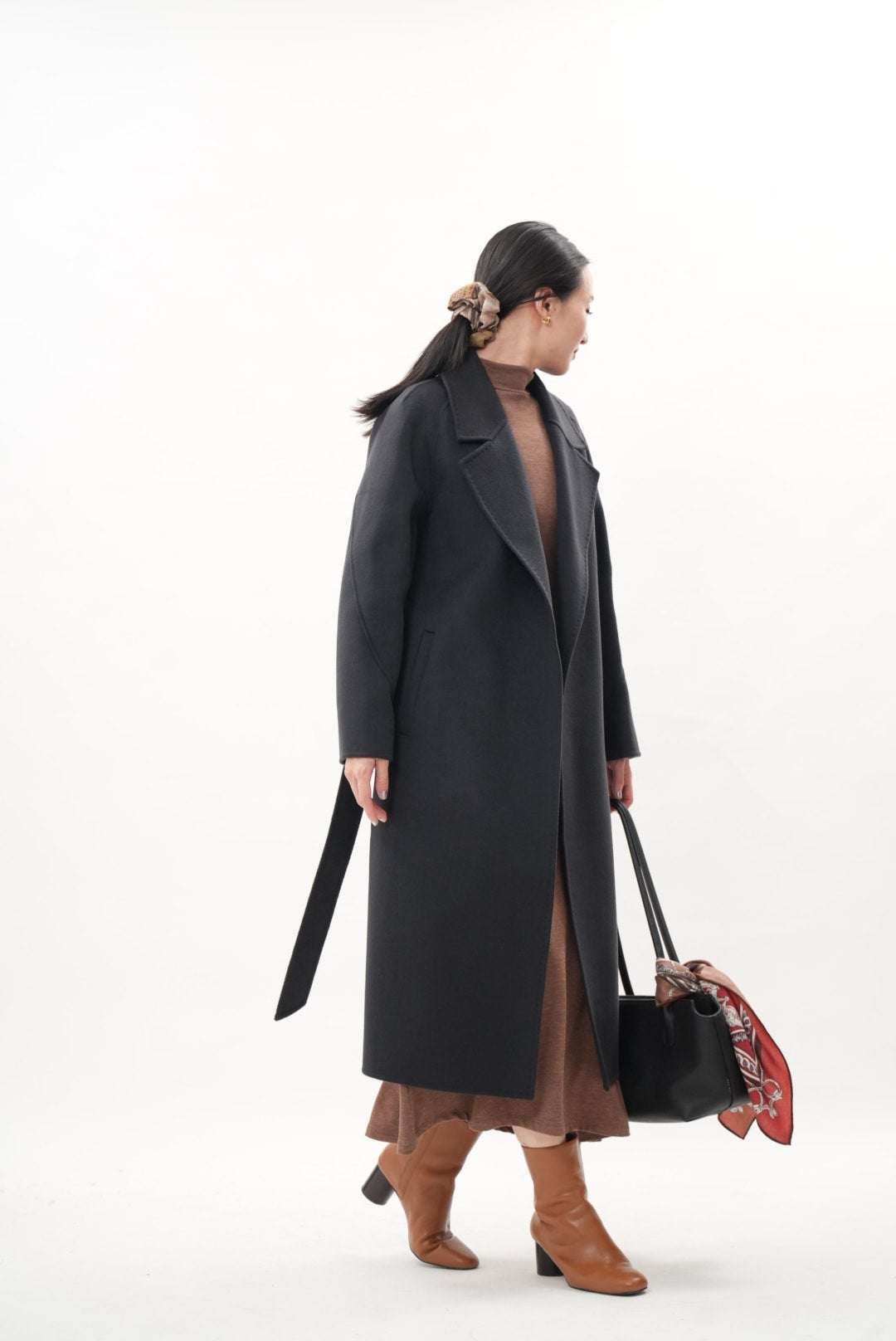 ウール100% ダブルフェイスロングコート(チャコールグレー)