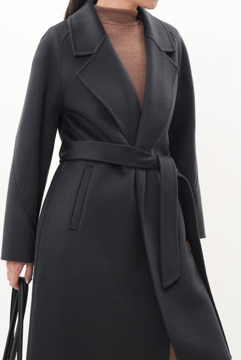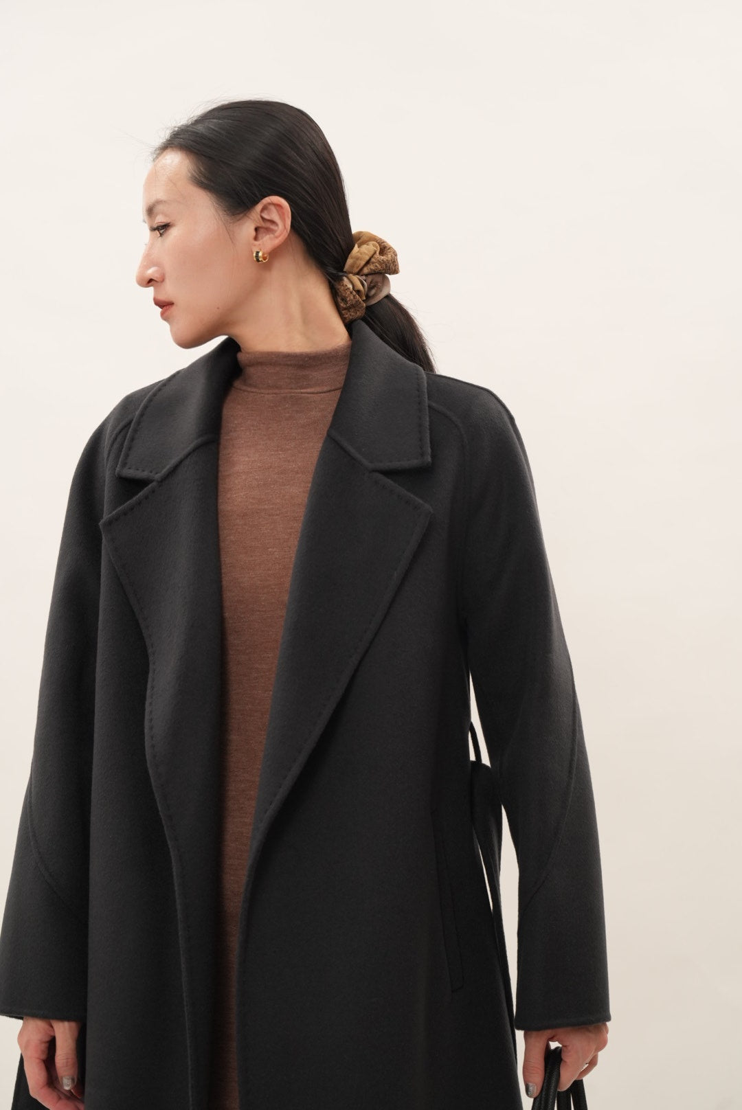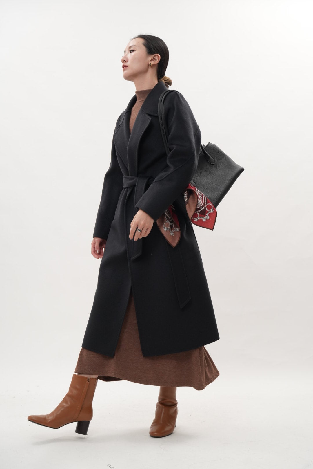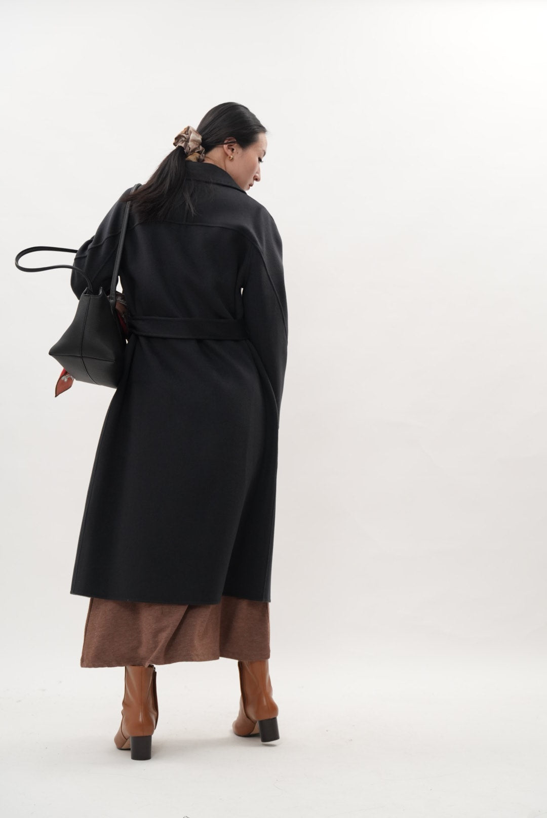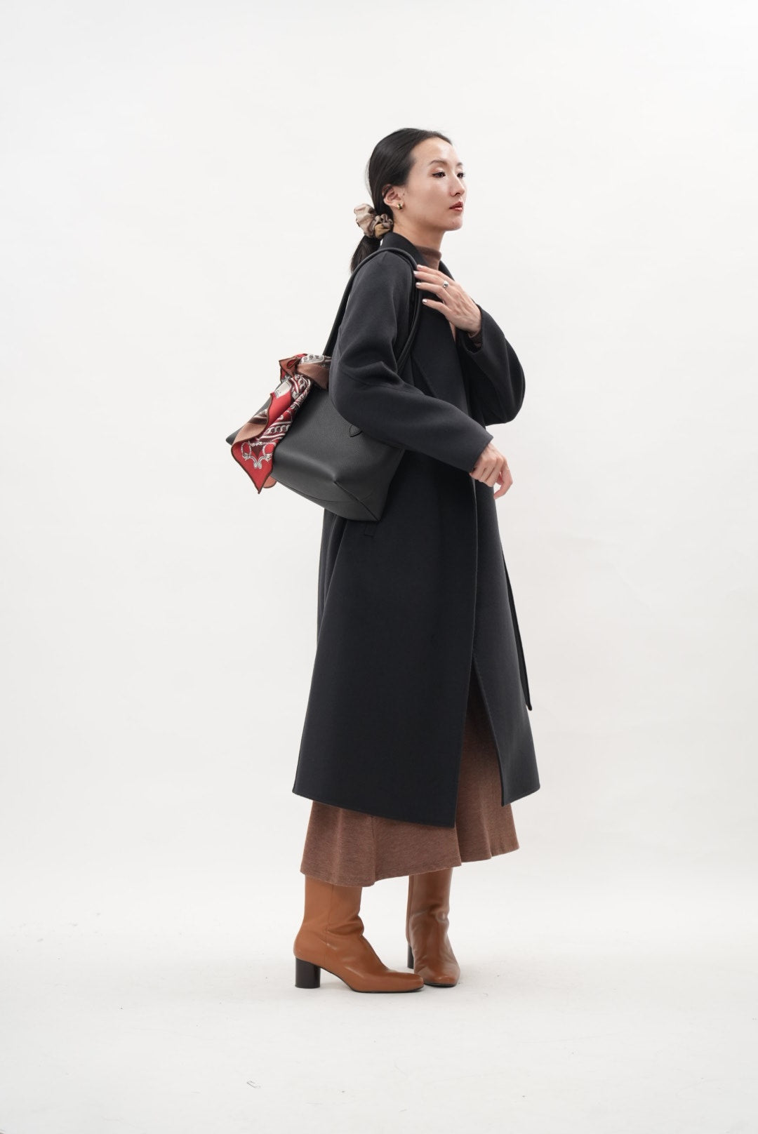 ウール100% ダブルフェイスロングコート(チャコールグレー)