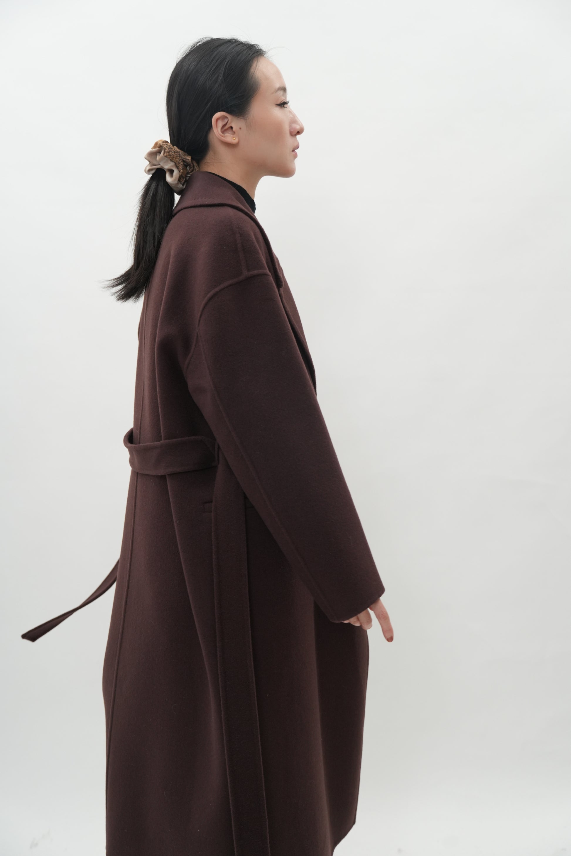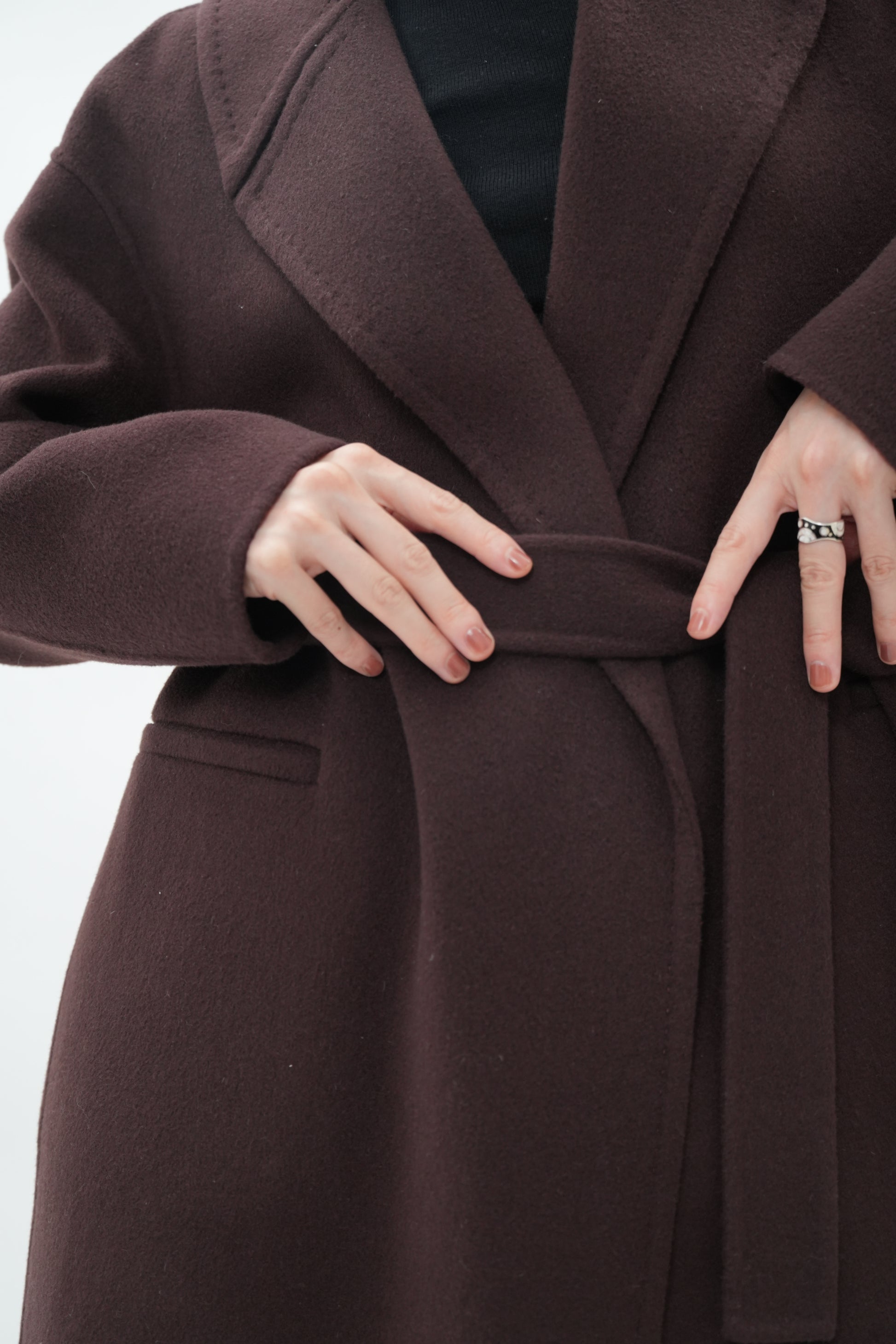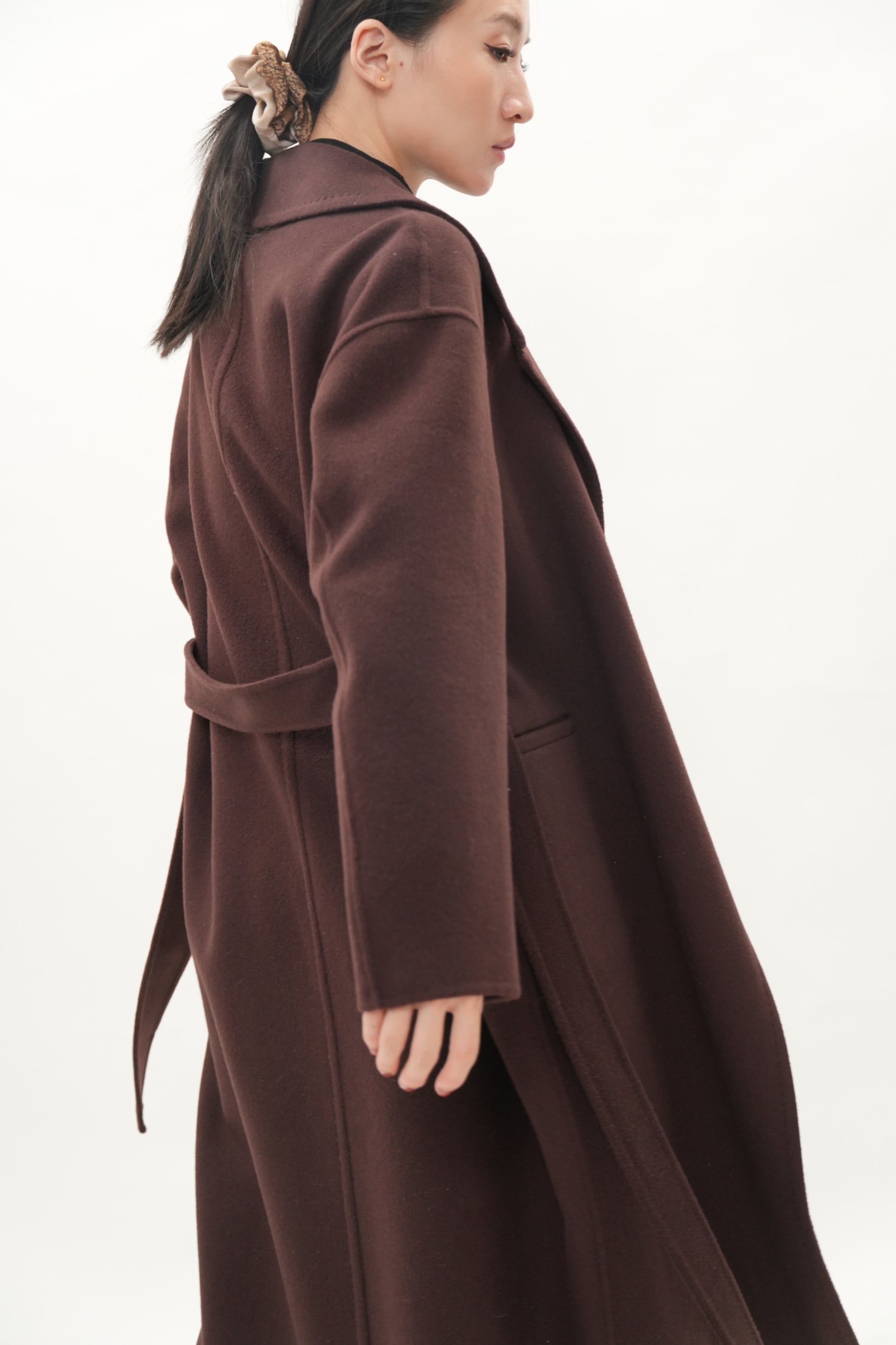 ウールカシミヤ エレガントロングコート(ブラウン)