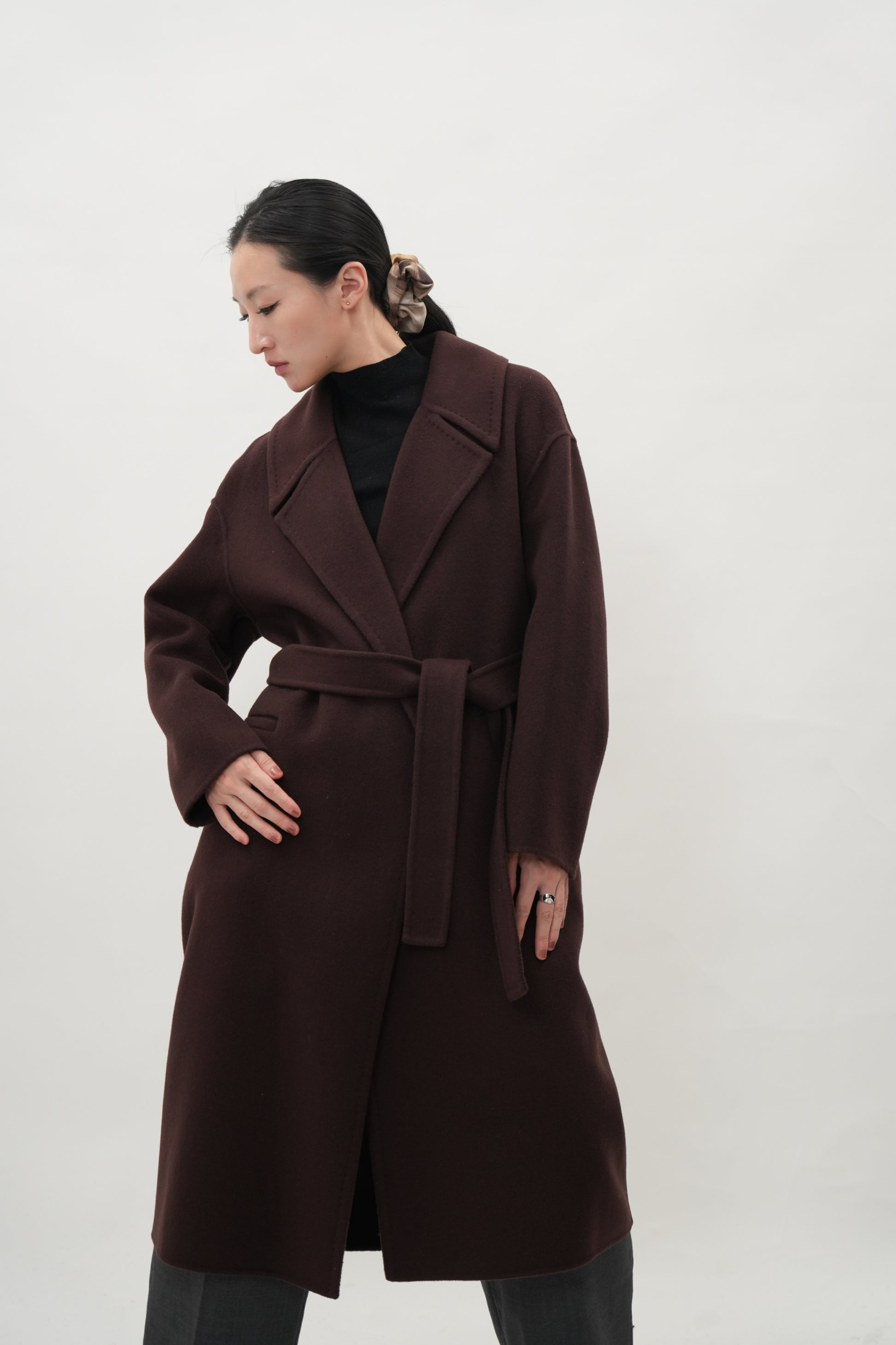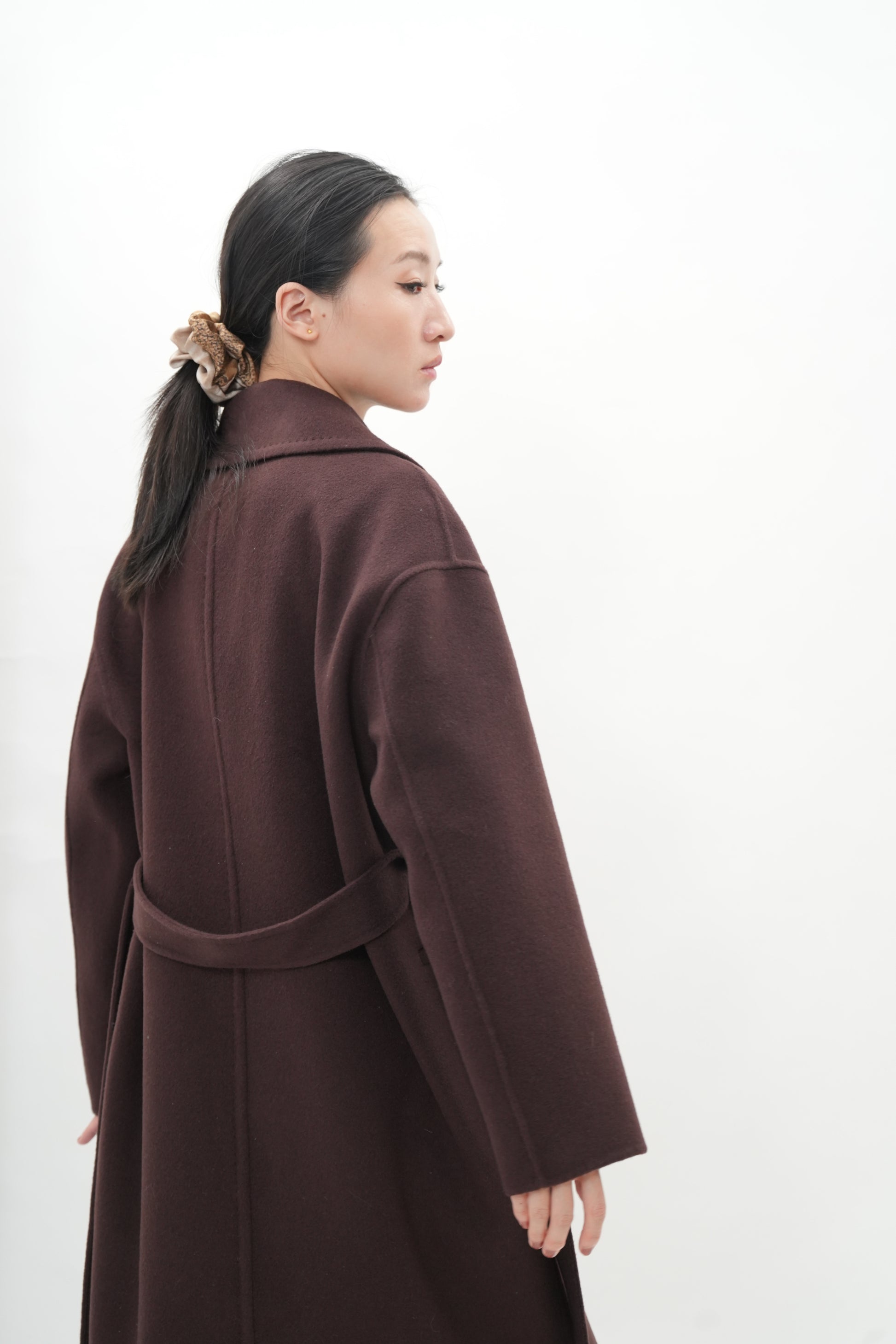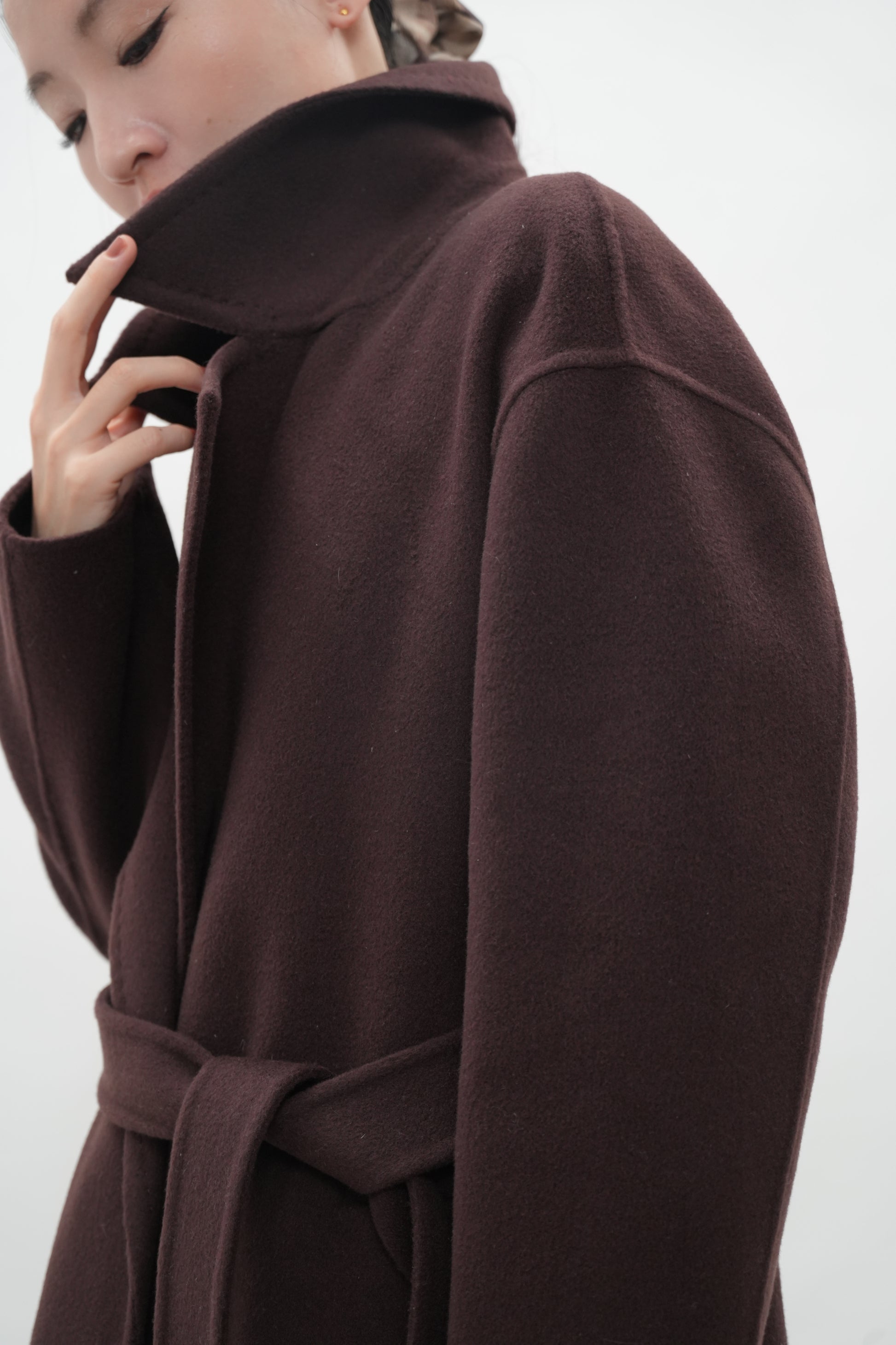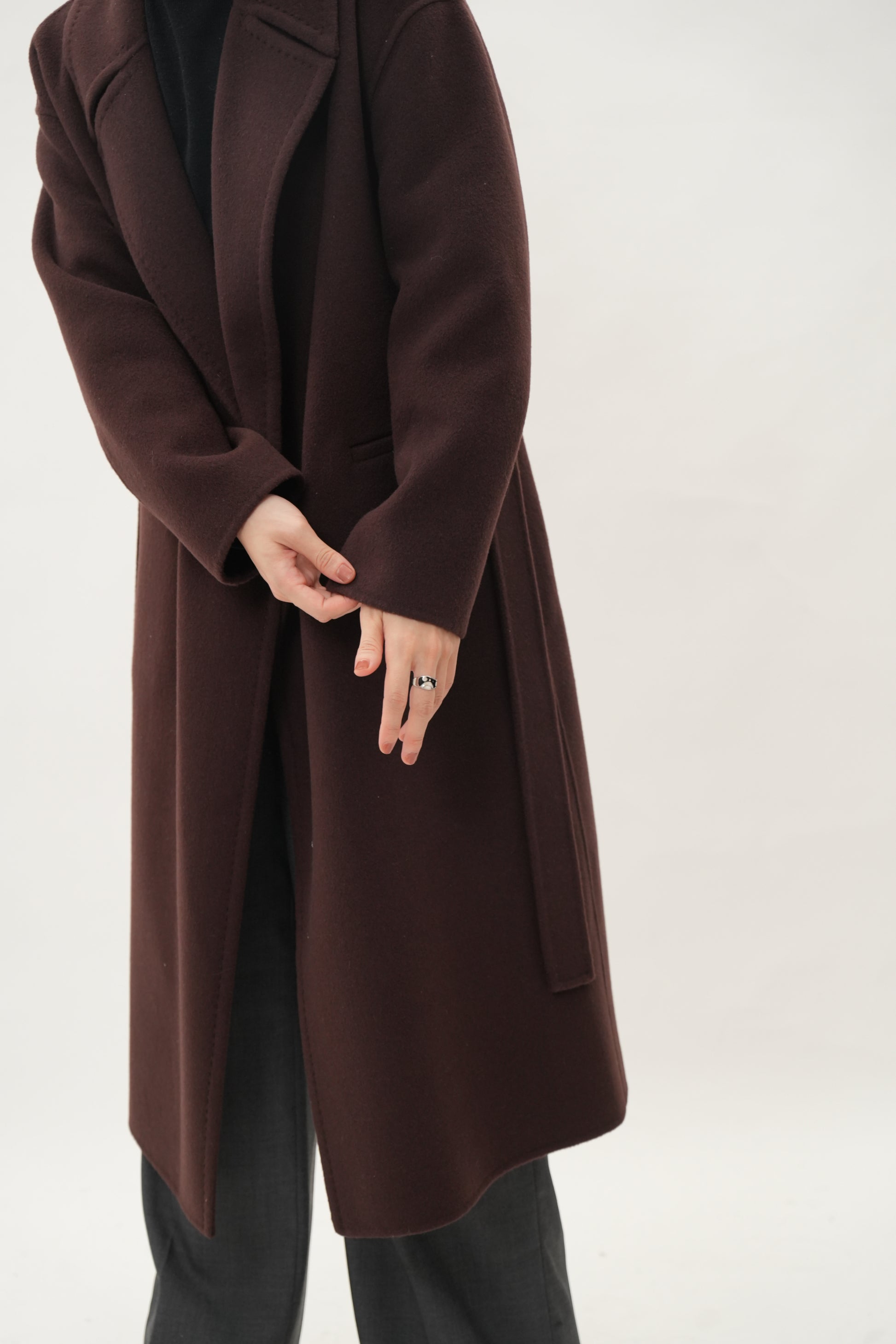 ウールカシミヤ エレガントロングコート(ブラウン)